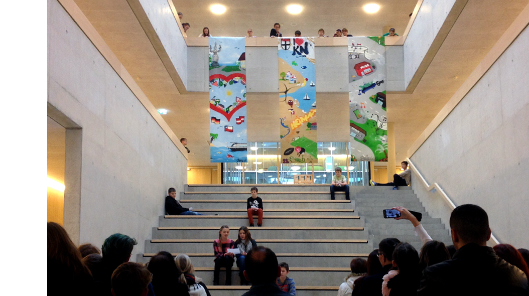 Stolz präsentierten die SchülerInnen der 6. Sekundarstufe ihre Projekte zum Thema »Heimat« der Schulgemeinschaft, FreundInnen und Familienmitgliedern. Die in 3 Gruppen aufgeteilten Lernenden haben sich künstlerisch, tänzerisch und performativ an 3 unterschiedlichen Texten zu Heimat genähert und sich gefragt, was Heimat eigentlich für sie bedeutet.